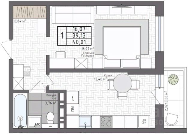 Данная квартира подходит под программу "Субсидированная ипотека" от компании Самолёт Плюс со ставкой от 12,25% годовых. У вас есть реальная возможность снизить ставку по кредиту и ежемесячный платёж!
