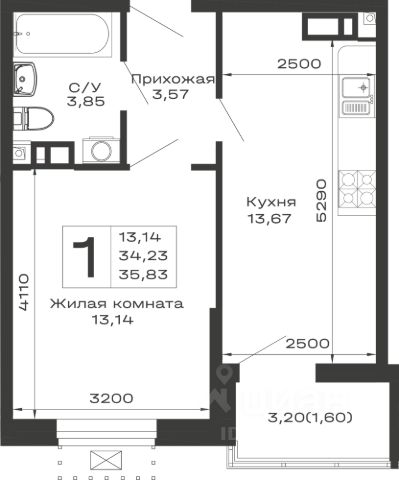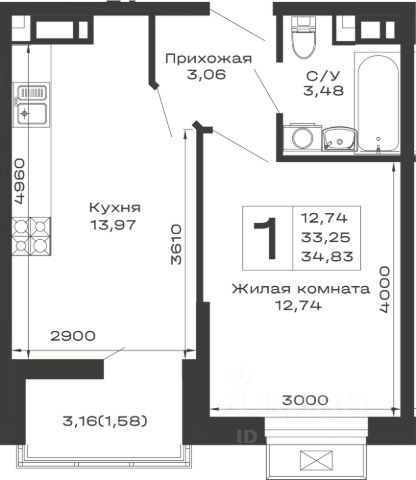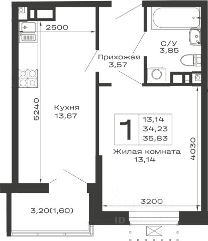 Продаётся 1-комнатная квартира в строящемся доме (Литер 3), срок сдачи: II-кв. 2027, общей площадью 38.75 кв.м., на 10 этаже.