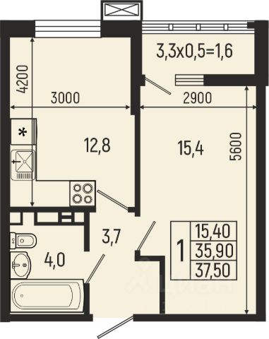 Продаётся 1-комнатная квартира в строящемся доме (Литер 8), срок сдачи: IV-кв. 2026, общей площадью 38.75 кв.м., на 12 этаже.