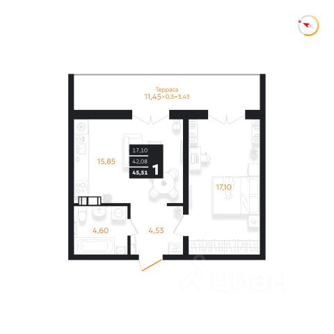 Продаётся 1-комнатная квартира в строящемся доме (Литер 3), срок сдачи: II-кв. 2027, общей площадью 47.22 кв.м., на 6 этаже.