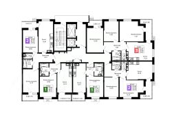 Благодаря тому, что фасад дома облицован плиткой с фактурой натурального камня, дом выглядит очень стильно и эстетично. Вы непременно оцените удобные входные группы на уровне земли - вам не придётся подниматься с коляской или с тяжелыми пакетами по ступенькам - всего пару шагов, и вы в подъезде возле лифта.