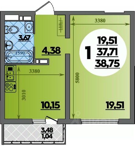 • Санузел под ключ: ванна с декоративным экраном, удобная раковина с пьедесталом, смесители, полотенцесушитель. На полу керамогранит.