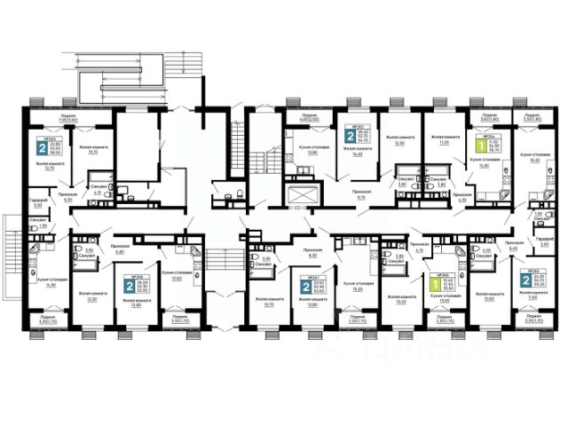 Продаётся 2-комнатная квартира в строящемся доме (Литер 3), срок сдачи: II-кв. 2027, общей площадью 63.61 кв.м., на 1 этаже.