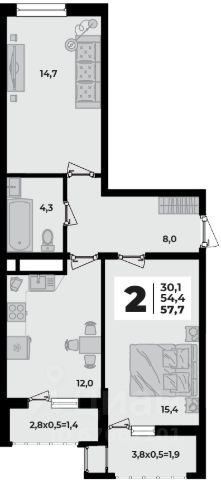 • ✅ Объект наибольшей площади: 57,7 м²