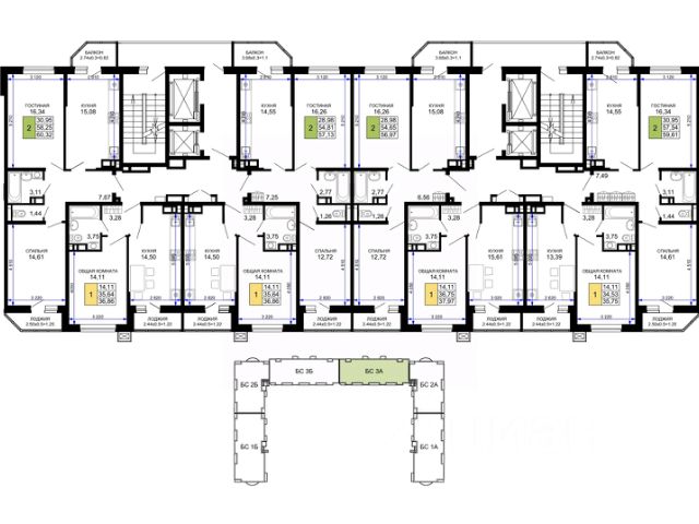 Продаётся 1-комнатная квартира в строящемся доме (Литер 3), срок сдачи: II-кв. 2027, общей площадью 38.75 кв.м., на 2 этаже.