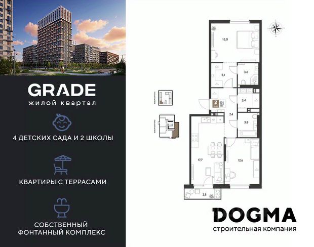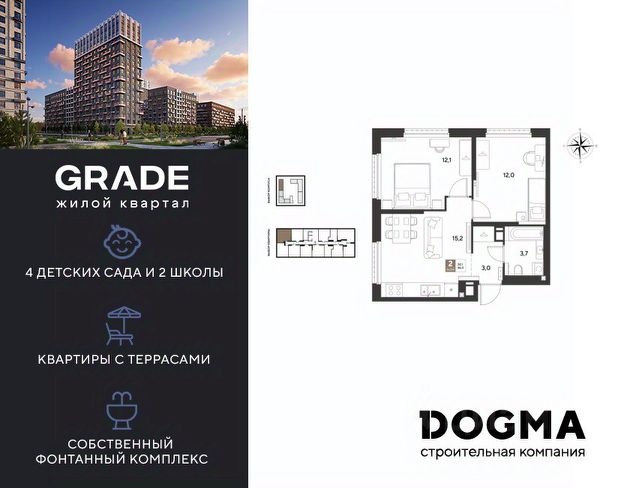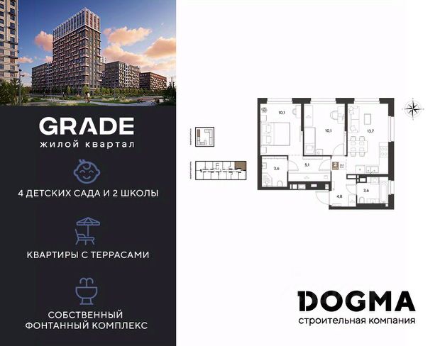 Жилой комплекс состоит из 2 кирпично-монолитных корпусов высотой 16 этажей. Фасады облицованы кирпичом, в подъездах выполнена дизайнерская отделка. На первом этаже предусмотрены помещения для хранения колясок. В каждом корпусе установлены пассажирские и грузовые лифты. В проекте представлены квартиры с 13 комнатами, с панорамными окнами и потолками высотой 2,65 метра. Жилье передается без отделки, в черновом варианте: выполнены базовые строительные работы, включая возведение стен. На стилобатной части комплекса обустроены озелененные дворы, детские и спортивные площадки. Территория организована по концепции без машин. Предусмотрены крытый паркинг на 100 мест и открытая парковка, а также освещенные тротуары. Безопасность обеспечивается видеонаблюдением и контролем доступа на территорию. Для дополнительного комфорта жильцов доступен сервис консьержа и система умного дома. Комплекс расположен в поселке Яблоновский Республики Адыгея. В 5 минутах пешком находится остановка общественного транспорта Космическая улица. В радиусе 515 минут находятся школы, детские сады, кафе, магазины, аптеки, салоны красоты и пункты выдачи. До центра Краснодара, где находятся театры, музеи и культурные достопримечательности, можно добраться за 20 минут транспортом.