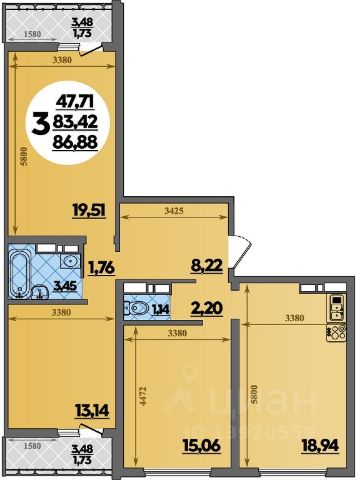 Площадь квартиры получилась 83,65 м, застройщик официально уведомил меня об этом. Выдача ключей уже 23 августа 2025! Моя цена на 1 300 000 рублей ниже, чем у застройщика по акции на квартиры которые построятся через 1,5 года и на 2 700 000 ниже от стандартной цены застройщика без акции.
