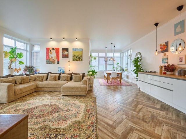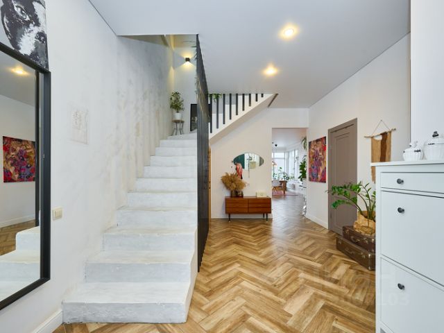 Дом общей площадью 156 кв.м с современной планировкой. На первом этаже очень просторная гостиная с высоким потолком 3 м., большая кухня с выходом во внутренний двор, гостевая спальня, и совмещенный санузел. На втором этаже две спальни, большая гардеробная, балкон, санузел..