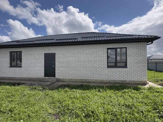 В ПРОДАЖЕ! Новый коттедж с заведенным и подключенным газом в поселке Яблоновском. Отличное местоположение: в шаговой доступности — общеобразовательная школа, супермаркет Пятерочка, пекарня, магазины стройматериалов, аптеки. Хорошие подъездные пути, улицы широкие, уличное освещение. До исторического центра Краснодара — 10 минут на машине. Возможна покупка дома с использованием средств льготной ипотеки. Одноэтажный коттедж общей площадью 147 кв.м расположен на земельном участке 4,5 сотки, назначения ИЖС. Участок огорожен по периметру забором, с фасадной стороны — кирпичные колонны, евроштакетник, откатные ворота, калитка. Двор забетонирован, отмостка — по периметру дома, парковочные места. Дом спланирован в крыльцо, холл, просторный санузел, три изолированные спальни, одна из которых — мастер-спальня о своим санузлом, кухню- гостиную с выходом на крытую террасу. Коммуникации: газ заведен и подключен, централизованное водоснабжение, электроснабжение 15 кВт, канализация — септик. Коттедж — в базовой отделке. За допплату застройщик может выполнить предчиствую отделку. Дом готов. Купить дом на улице Луговая в поселке городского типа Яблоновский.