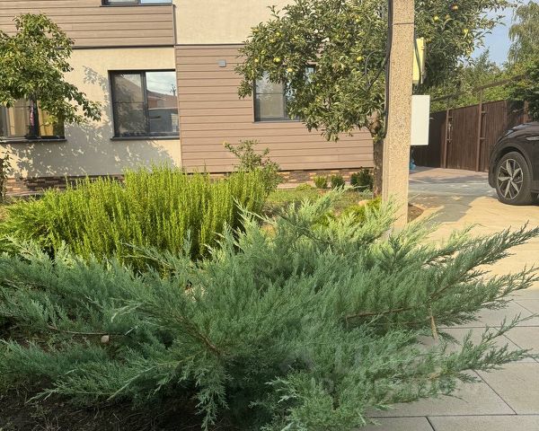 Участок 5 соток: тротуарная плитка, дизайнерское озеленение, зона барбекю, навес для 2-х автомобилей, терраса, бассейн.