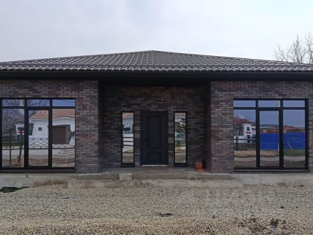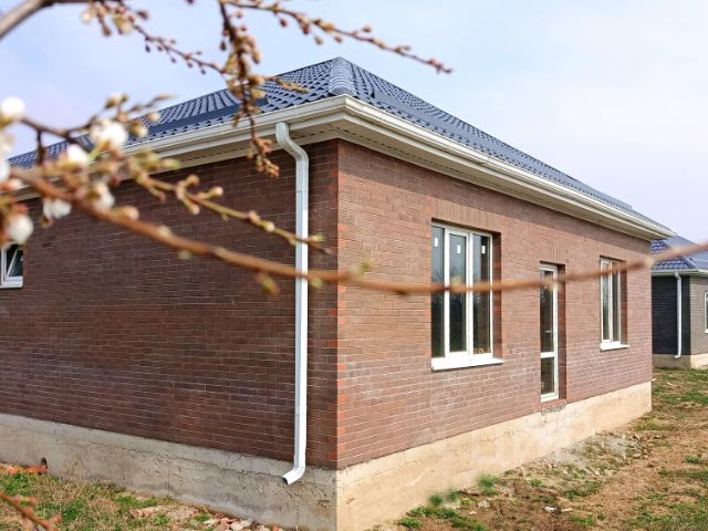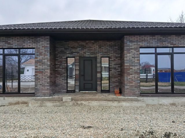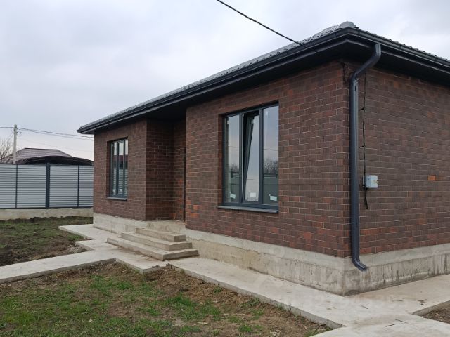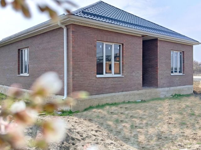 В ПРОДАЖЕ! Новый коттедж в микрорайоне Новая Адыгея ауле Старобжегокай. Отличный район для загородной жизни, подъездные пути — асфальтированные дороги. В шаговой доступности — школа, детский сад, магазины. До центра Краснодара — 15 минут на автомобиле. Дом расположен на территории нового коттеджного квартала, все дома возведены в едином архитектурном стиле. Хорошие подъездные пути, территория комплекса благоустроена. Одноэтажный коттедж возведен в современном архитектурном стиле по индивидуальному проекту с использованием качественных строительных материалов. Внутренние стены — блок, наружные — лицевой керамический кирпич, большие металлопластиковые окна с декоративной раскладкой, кровля — металлочерепица, дизайнерские двери. Дом общей площадью 100 кв.м спланирован в крытое крыльцо, прихожую, холл, раздельный санузел, две изолированные комнаты, кухню-гостиную, в которой можно выделить еще комнату, крытую террасу. Терраса благоустроена, возведена готовая мангальная зона. Коммуникации: центральное водоснабжение, электроэнергия 15 кВт, 3 фазы, канализация — септик 12 м3, газ — по меже. Дом расположен на 6 сотках земли, назначения ИЖС. Участок огорожен по периметру забором, с фасадной стороны — кирпичные колонны, кованый забор, ворота, калитка, двор благоустроен, паркоместа для автомобилей. В доме выполнена предчистовая отделка: стяжка пола, штукатурка стен, разводка электрического, сантехнического и отопительного оборудования, двухконтурный газовый котел, современные радиаторы отопления. Дом готов. Льготная ипотека.