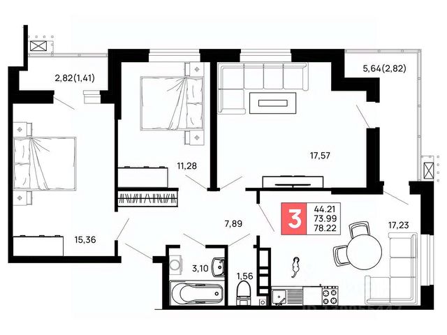 Жилой комплекс состоит из 2 кирпично-монолитных корпусов высотой 16 этажей. Фасады облицованы кирпичом, в подъездах выполнена дизайнерская отделка. На первом этаже предусмотрены помещения для хранения колясок. В каждом корпусе установлены пассажирские и грузовые лифты. В проекте представлены квартиры с 13 комнатами, с панорамными окнами и потолками высотой 2,65 метра. Жилье передается без отделки, в черновом варианте: выполнены базовые строительные работы, включая возведение стен. На стилобатной части комплекса обустроены озелененные дворы, детские и спортивные площадки. Территория организована по концепции без машин. Предусмотрены крытый паркинг на 100 мест и открытая парковка, а также освещенные тротуары. Безопасность обеспечивается видеонаблюдением и контролем доступа на территорию. Для дополнительного комфорта жильцов доступен сервис консьержа и система умного дома. Комплекс расположен в поселке Яблоновский Республики Адыгея. В 5 минутах пешком находится остановка общественного транспорта Космическая улица. В радиусе 515 минут находятся школы, детские сады, кафе, магазины, аптеки, салоны красоты и пункты выдачи. До центра Краснодара, где находятся театры, музеи и культурные достопримечательности, можно добраться за 20 минут транспортом. Квартира, примерная площадь 80 м2 в республике Адыгея.