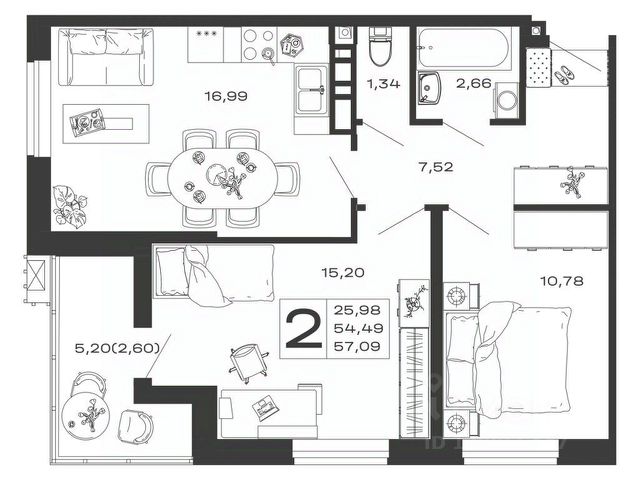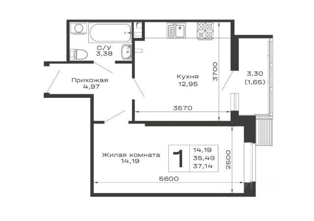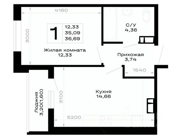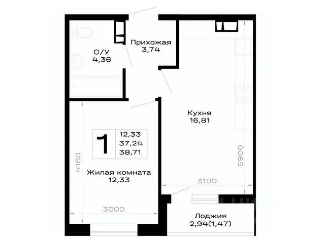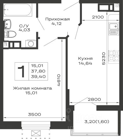 • Санузел под ключ: ванна с декоративным экраном, удобная раковина с пьедесталом, смесители, полотенцесушитель. На полу керамогранит.