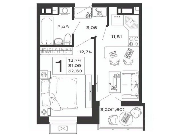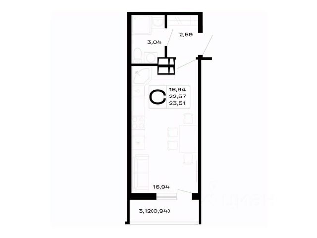 Продаётся студия в строящемся доме (Литер 8), срок сдачи: IV-кв. 2026, общей площадью 30.91 кв.м., на 7 этаже.