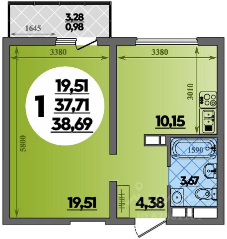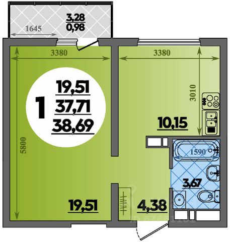 • Санузел под ключ: ванна с декоративным экраном, удобная раковина с пьедесталом, смесители, полотенцесушитель. На полу керамогранит.
