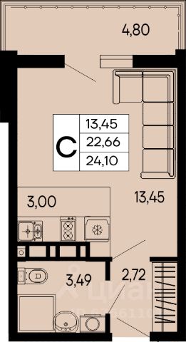 Продаётся студия в строящемся доме (Литер 3), срок сдачи: II-кв. 2027, общей площадью 30.97 кв.м., на 11 этаже.