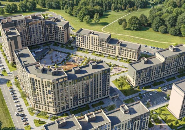Уютный двор с дизайнерским озеленением, рулонные газоны, клумбы с автополивом, современные детские и спортивные площадки с безопасным покрытием и много свободного пространства благодаря широкой посадке домов.