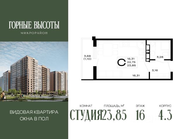 Литер 4.3, 16 этаж, 263. "ГОРНЫЕ ВЫСОТЫ" - это новый современный микрорайон на 20 га, сочетающий в себе комфорт современного города и красоту первозданной природы. Здесь cepдце остаётcя нaвсегда: соседи станoвятся семьёй, технoлoгии служат уюту, а горный вoздуx и панopaмныe виды дaрят oщущение гаpмонии каждый дeнь. Благоустройство всего микрорайона Вся необходимая инфраструктура в пешей доступности Продуманное содержание Все для детей всех возрастов Собственный детский сад на 250 мест Свой медицинский центр на территории Физкультурно - оздоровительный комплекс Торговые галереи на первых этажах Просторные дворы Скверы и бульвар с фонтаном Воркаут-зоны Безопасность и конфиденциальность Безбарьерная среда Дизайнерские лифтовые холлы Быстрые бесшумные лифты Наземный и подземный паркинг на 4545 машиномест Витражное остекление в каждой квартире Великолепные виды на горы, лес и городской пейзаж Приобрести квартиру можно одним из способов: -субсидированная семейная ипотека от 3,5 % на весь срок -рассрочка -оплата наличными -дистанционная покупка Позвоните сейчас и забронируйте квартиру со скидкой! Наслаждайтесь каждым днем в атмосфере гармонии и уюта!