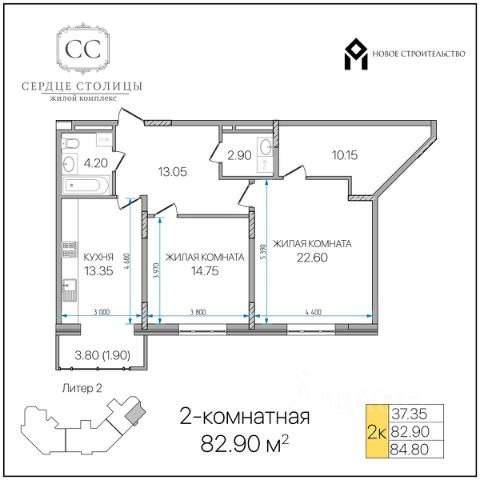 • ✅ Минимальная площадь: 37,4 м²