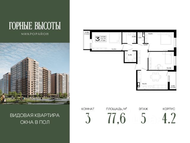 Литер 4.2, 5 этаж, 20. "ГОРНЫЕ ВЫСОТЫ" - это новый современный микрорайон на 20 га, сочетающий в себе комфорт современного города и красоту первозданной природы. Здесь cepдце остаётcя нaвсегда: соседи станoвятся семьёй, технoлoгии служат уюту, а горный вoздуx и панopaмныe виды дaрят oщущение гаpмонии каждый дeнь. Благоустройство всего микрорайона Вся необходимая инфраструктура в пешей доступности Продуманное содержание Все для детей всех возрастов Собственный детский сад на 250 мест Свой медицинский центр на территории Физкультурно - оздоровительный комплекс Торговые галереи на первых этажах Просторные дворы Скверы и бульвар с фонтаном Воркаут-зоны Безопасность и конфиденциальность Безбарьерная среда Дизайнерские лифтовые холлы Быстрые бесшумные лифты Наземный и подземный паркинг на 4545 машиномест Витражное остекление в каждой квартире Великолепные виды на горы, лес и городской пейзаж Приобрести квартиру можно одним из способов: -субсидированная семейная ипотека от 3,5 % на весь срок -рассрочка -оплата наличными -дистанционная покупка Позвоните сейчас и забронируйте квартиру со скидкой! Наслаждайтесь каждым днем в атмосфере гармонии и уюта!