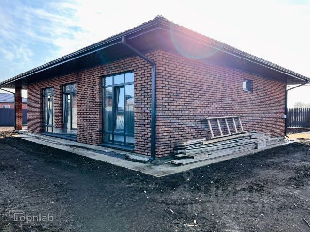 Благоустроенная придомовая территория. Забетонирована площадка под 2 автомобиля во дворе и отмостка по периметру. Освещение на колоннах и на фасаде дома.