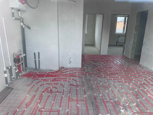 В доме — предчистовая отделка: стяжка пола, штукатурка стен, разводка коммуникаций, радиаторы отопления, двухконтурный котел.