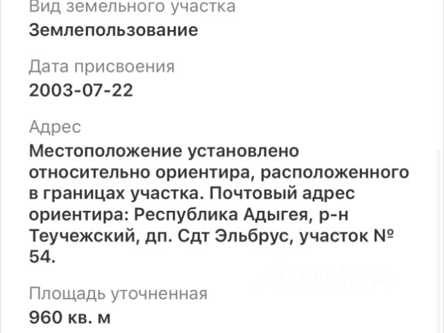 з/у место расположение:Республика Адыгея,Теучежский р-он, Пчегатлукайское поселение садово- дачное товарищество " Эльбрус"находится ближе. к трассе Майкоп -Краснодар до центра Адыгейска 2 км . Чистый ровный з/у ,все документы готовы к продаже имеется/строительный план на застройку з/у ,межевание участка.