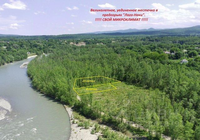 Ровный земельный участок в 200 метрах от реки "Белая", в самом низу хутора Шевченко, что делает участок укромным местом, скрытым от посторонних глаз. Шум моторов не слышен с дороги, так как участок защищён естественным рельефом и прикрыт от шума пологим спуском. Слышен только шум реки. В двух минутах ходьбы подвесной мост через реку и пляж. В пяти минутах ходьбы шикарная поляна, также с выходом к реке. По границе участка проходят газопровод, водопровод и электричество. Все коммуникации центральные. Участок расположен на границе, отделяющей городскую жизнь от туристической зоны республики. В одну сторону термальные источники (10 минут езды) и город Майкоп, до которого 20 минут езды. В другую сторону водопады Руфабго и Хаджохская теснина (10 минут езды), станица Даховская и Дегуакская поляна со строящимся этнопарком и зоной развлечений (15 минут езды), строящийся горнолыжный курорт "Лагонаки" (30 минут езды) и посёлок Гузерипль (30 минут езды). Локация участка позволяет находится в центре туристического кластера и участвовать во всех мероприятиях активного отдыха, оставаясь при этом в тишине и покое в своём доме у реки. В непосредственной близости от участка находятся база отдыха и гостевые дома. Продается 2 участка - по 5 соток каждый. Цена указана за 1 участок. Фото к описанию прилагаются к объявлению.