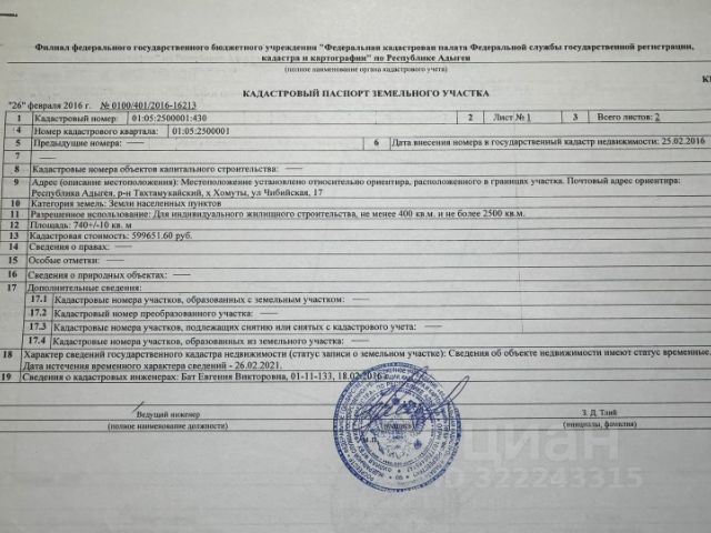 Срочная продажа! Участок с выходом на две улице, свет подведен три фазы стоит счетчик, вода центральная подключена в колодце, залит фундамент на 130кв, газ подводят по запросу все документы готовы! участок ровной формы , по желанию можно разбить на два, выезд на участок с двух сторон. земля плодовитая , можно садить и выращивать по желанию. до улице асфальт проходит, есть готовый проект дома на 100кв. Все в шаговой доступности. Собственник. Кадастровый номер. 01:05:1300007:303. Кадастровый номер. 01:05:1300007:150. Продажа земельного участка в Тахтамукайском районе республики Адыгея без посредников.