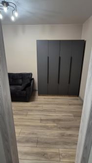 Квартира полностью оборудована всем необходимым для комфортного проживания. В комнате удобный многофункциональный шкаф и комфортабельный диван. Бытовая техника: холодильник, сплит-система, эл. плита, стиральная машина, микроволновая печь.