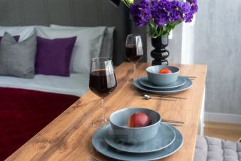 Укомплектованная необходимой посудой кухня;