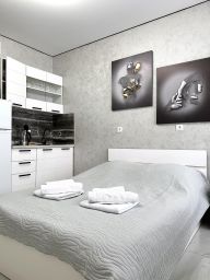 В квартире есть все необходимое для проживания - тапочки, халаты, ванные, постельные и кухонные принадлежности.