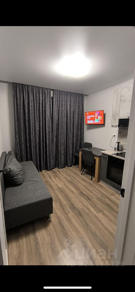 В квартире сделан качественный евроремонт, что гарантирует комфортное проживание. Квартира полностью меблирована: вся необходимая мебель есть как в комнате, так и на кухне. Из техники установлены кондиционер, холодильник, телевизор и стиральная машина. Санузел совмещённый, оборудован ванной, поэтому можно расслабиться после трудового дня. Окна выходят на улицу, и с балкона можно наслаждаться свежим воздухом.