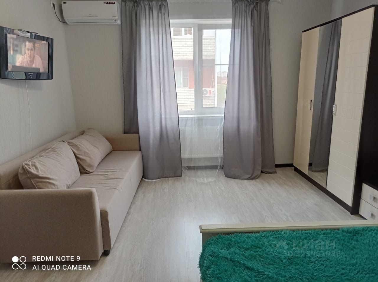 В квартире сделан евроремонт, благодаря чему она выглядит стильно и современно. Есть всё необходимое для комфортной жизни: на кухне и в комнате установлена мебель, а из техники — кондиционер, холодильник, телевизор и стиральная машина. Санузел совмещённый, оборудован душевой кабиной. Также имеется балкон, где можно наслаждаться свежим воздухом.