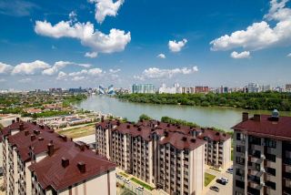 Великолепный панорамный вид на город с 16го этажа, на реку Кубань)