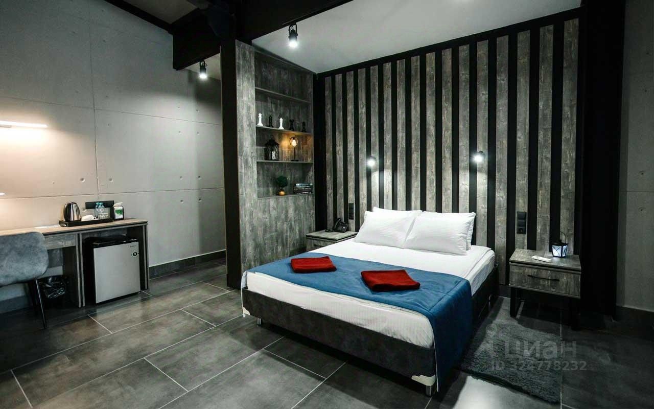 Мебель: двуспальная кровать, кресло, багажная тумба, зеркало, диван, шкаф для одежды, письменный стол и стул, вешалки. Детская кроватка по запросу