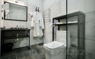 Ванная комната: душ, санузел, раковина, зеркало с подсветкой, зубная щетка, зубная паста, шампунь, мыло, гель для душа, лосьон для тела, салфетки, туалетная бумага, халаты, банные полотенца, тапочки, шапочка для душа.