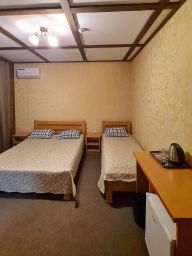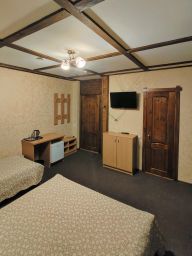 3-местные номера с просторным балконом, отделаные деревом и декоративной штукатуркой. 2й этаж, вид из окна на горы. В номерах сан.узел с душем, цифровое ТВ, холодильник, чайник