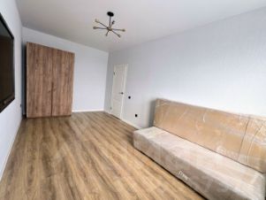 Полностью укомплектована мебелью: кухня, обеденный стол, стулья, диван, гардеробный шкаф, телевизор, вешалка в прихожей, стиральная машина и пр.
