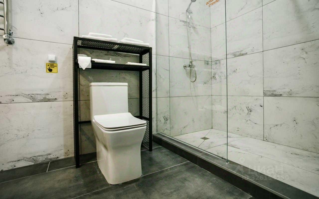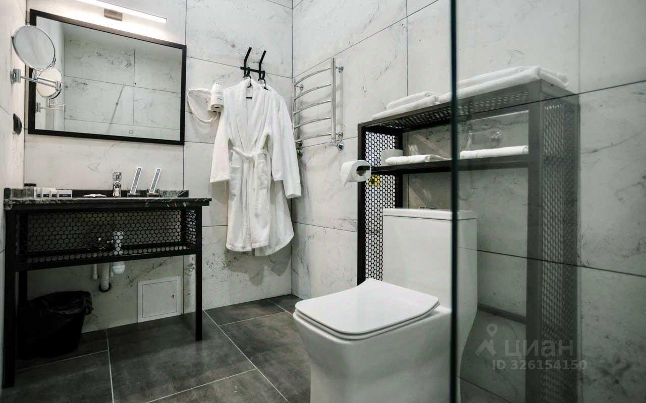 Ванная комната: душ, санузел, раковина, зеркало с подсветкой, зубная щетка, зубная паста, шампунь, мыло, гель для душа, лосьон для тела, салфетки, туалетная бумага, халаты, банные полотенца, тапочки, шапочка для душа.