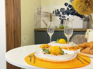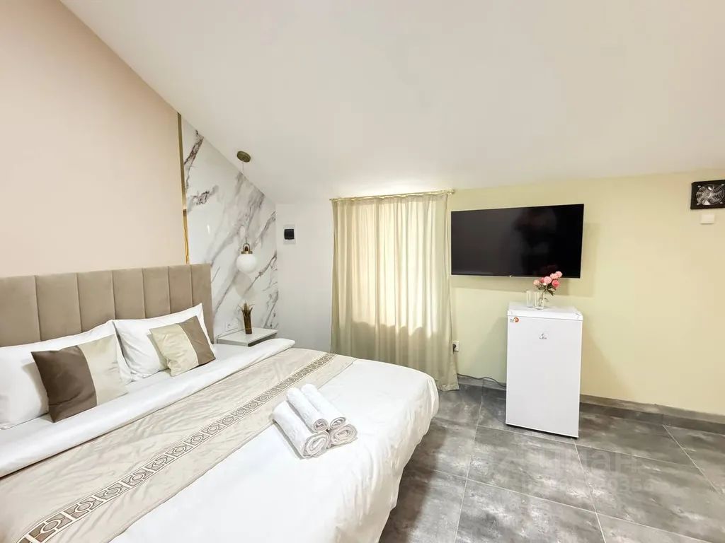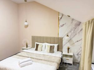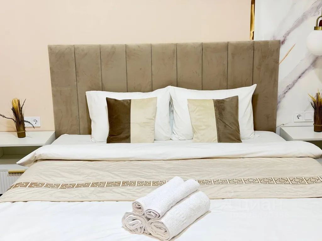 Апартаменты встречают вас в том же виде как на фотографии! Спальных мест 1(двуспальная парящая кровать king-sizе (180х200)с ортопедическим матрасом. Есть все необходимое для проживания: ТВ smаrt tv 42,wifi,микроволновка,эл.чайник, холодильник, варочная плита 2 конфорки, сплит система, стиральная машина, качественное постельное белье, комплект полотенец, 2 подушки, посуда в полной комплектации, утюг + гладильная доска, средства гигиены, моющие средства...