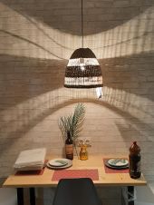 большая кухня с набором посуды и всей бытовой техникой и столом в стиле LOFT