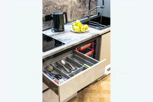 - Встроенная корпусная мебель с большим количеством мест для хранения