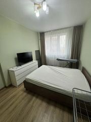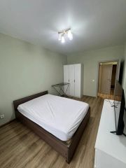 Полноценная спальня 14,5 кв, двуспальная кровать с ортопедическим матрасом 140*200, комод и шкаф для хранения вещей, телевизор 43'.