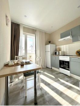 Полностью готова к приготовлению. Есть посуда, техника (холодильник, варочная поверхность, чайник). Всё чистое, без следов чужого быта.