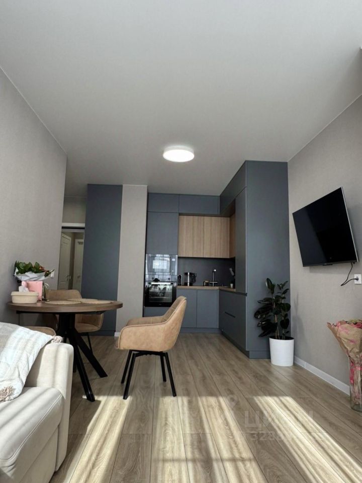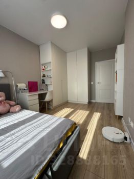 Спальня и кухня-гостиная. В квартире сделан евро ремонт, всю мебель делали под заказ, так что продумано все до мелочей, много мест хранения. В спальне огромный шкаф, рабочее место, стеллаж, двуспальная кровать с подъемным механизмом и ящиком для хранения постельного белья. В коридоре шкаф для верхней одежды, сумок и обуви. В кухне-гостиной, еще один шкаф для хранения вещей, раскладывающийся диван, с матрасом предназначенным для сна. Вся техника встроенная фирмы Haier: духовой шкаф, микроволновая печь, индукционная печь, посудомоечная машина, холодильник, телевизор. Стиральная машина на 6 кг, установлены две сплит системы.