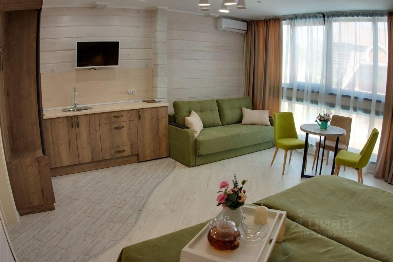 Комфортабельный номер без балкона в современном стиле с хорошим оснащением. В номере есть все необходимое для комфортного проживания: двуспальная кровать, диван, шкаф, стол, стулья, тумбочки, кухонный гарнитур. К удобствам гостей отеля относятся также телевизор, бесплатный Wi-Fi, сплит-система, холодильник, чайник, микроволновая печь, комплект полотенец, тапочки и халаты.