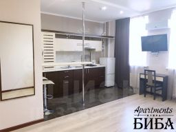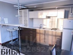 Номера разделен на две зоны, спальную и кухню, оснащен большой двуспальной кроватью с постельным бельем, полотенцами, необходимой мебелью, холодильником, чайником, набором посуды, кондиционером, телевизором, душевой кабиной и туалетом.