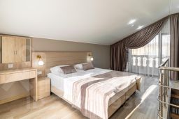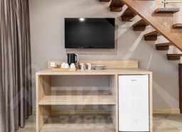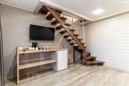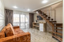 Двухуровневый семейный номер - это решение для семей с детьми или групп друзей. На верхнем этаже находится спальня с двуспальной кроватью, а на нижнем этаже - гостиная с раскладным диваном и телевизором. Номер также оснащен холодильником, чайником.
