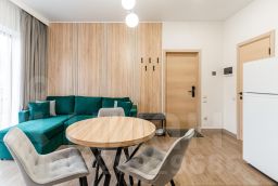 Трехместный семейный комфорт без балкона - это новый номер в современном стиле с двуспальной кроватью, диваном, шкафом, столом, стульями, тумбочками и кухонным гарнитуром. Кроме того, для удобства в номере есть телевизор, wi-fi, сплит-система, холодильник, чайник, микроволновая печь, комплект полотенец, тапочки и халаты.